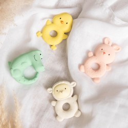 Apaisez les gencives sensibles de votre bébé avec cet adorable anneau de dentition poussin signé Amadeus. Conçu en caoutchouc naturel, il est idéal pour accompagner les tout-petits lors des premières poussées dentaires. Sa matière naturelle, hypoallergénique et biodégradable respecte la peau délicate des bébés tout en offrant une texture souple et agréable à mordiller. Grâce à sa forme ludique de poussin et à ses dimensions compactes, il est facile à saisir par les petites mains et à emporter partout. Léger et ergonomique, cet anneau de dentition aide à soulager naturellement les gencives tout en éveillant la curiosité de bébé avec un design doux et rassurant.