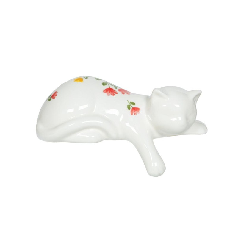Apportez une note de douceur et de sérénité à votre intérieur avec la figurine Chat Louise en céramique. Allongé dans une posture paisible, ce petit chat invite à la détente et crée une atmosphère apaisante dans votre décoration. Son design épuré est délicatement rehaussé de fines fleurs colorées, apportant une touche printanière pleine de charme. Sa finition brillante met en valeur ses courbes douces et ses détails subtils. Compacte et élégante, la figurine Chat Louise trouve facilement sa place sur une étagère, une table de chevet ou une console, pour une décoration chaleureuse, poétique et intemporelle.