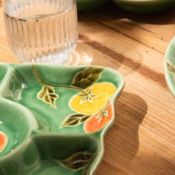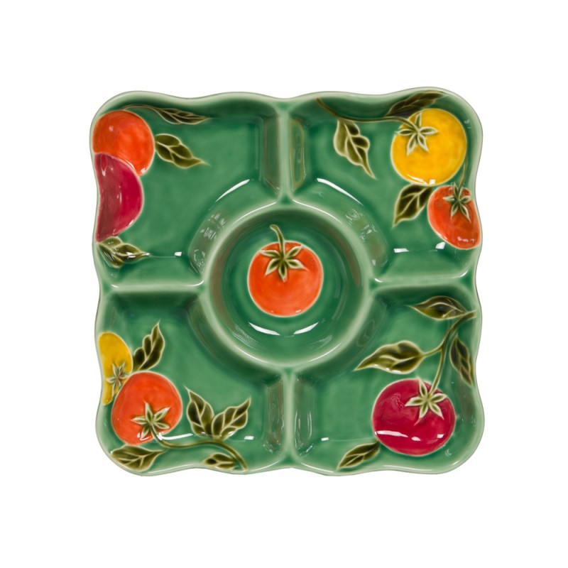 La collection Pomodoro de Table Passion met en avant la générosité des saveurs méditerranéennes. Ses motifs de tomates rouges et jaunes, contrastant avec un vert profond, insufflent chaleur et gourmandise à la table. Réalisée en grès résistant, elle se décline en plats variés, parfaits pour partager apéritifs et repas conviviaux dans un esprit authentique.