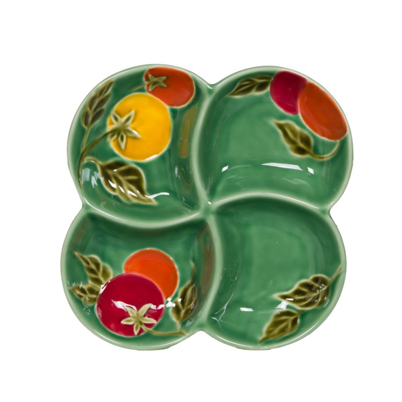 La collection Pomodoro de Table Passion met en avant la générosité des saveurs méditerranéennes. Ses motifs de tomates rouges et jaunes, contrastant avec un vert profond, insufflent chaleur et gourmandise à la table. Réalisée en grès résistant, elle se décline en plats variés, parfaits pour partager apéritifs et repas conviviaux dans un esprit authentique.