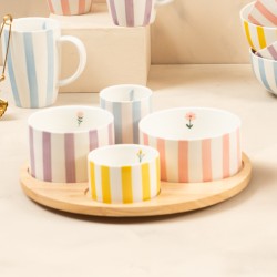 La collection Bandol de Table Passion évoque la douceur des beaux jours et l’esprit méditerranéen. Ses rayures pastel aux teintes lumineuses, ponctuées de petits motifs floraux, apportent fraîcheur et légèreté à la table. Réalisée en porcelaine, elle se décline en bols, mugs, tasses et sets apéritifs, parfaits pour partager des instants simples et conviviaux en toute élégance.
