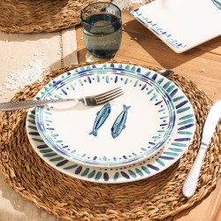 La collection Kyanos de Table Passion invite à un voyage en bord de mer. Réalisée en faïence, elle se distingue par ses motifs de poissons stylisés et ses nuances de bleu profond qui évoquent la Méditerranée. Assiettes, plats et saladiers apportent fraîcheur et authenticité à vos repas, parfaits pour des tables estivales et conviviales. Une gamme qui respire l’air marin et sublime vos moments de partage.