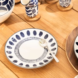 Ses motifs bleus profonds, délicatement peints sur un fond blanc lumineux, rappellent l’élégance des céramiques traditionnelles revisitées dans un esprit moderne. Conçues en porcelaine, les pièces allient finesse, solidité et praticité au quotidien. Avec ses assiettes graphiques et son calotte au décor généreux, la collection Milos insuffle à chaque repas une atmosphère conviviale et éclatante, idéale pour partager des moments gourmands aux accents d’évasion. (lot de 6)