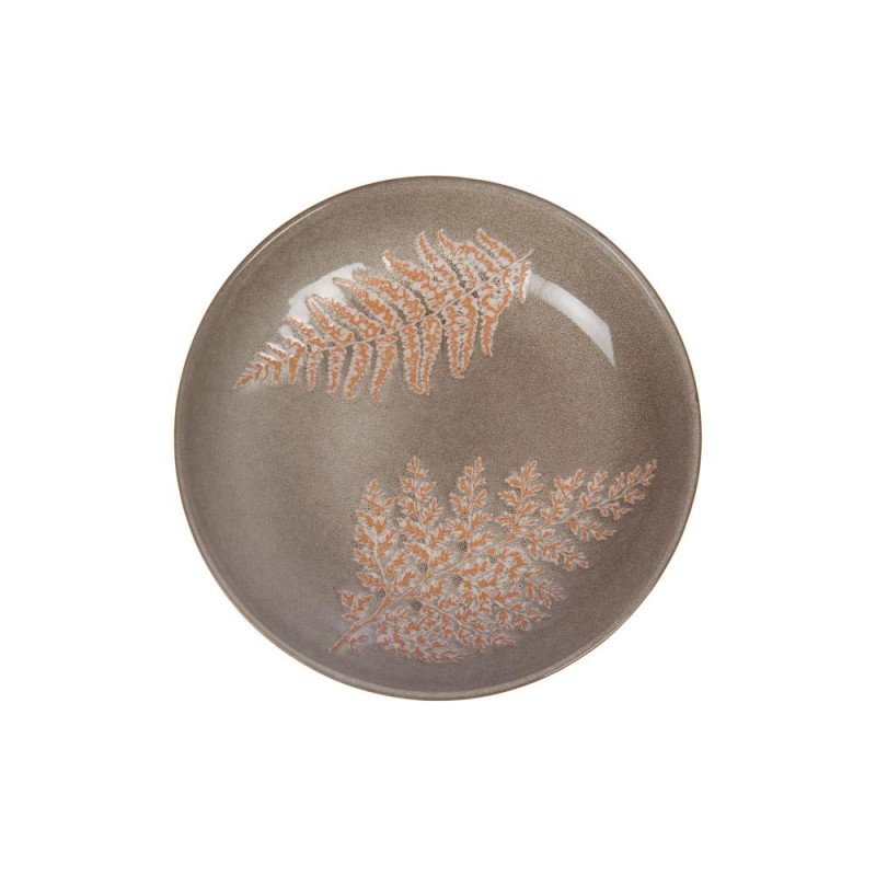 Apportez une touche naturelle et raffinée à vos repas avec cette assiette creuse en grès. Son décor délicat de feuilles orangées sur fond taupe crée une ambiance chaleureuse et conviviale. Parfaite pour servir soupes, pâtes ou salades, elle allie esthétique et praticité au quotidien. (lot de 6)