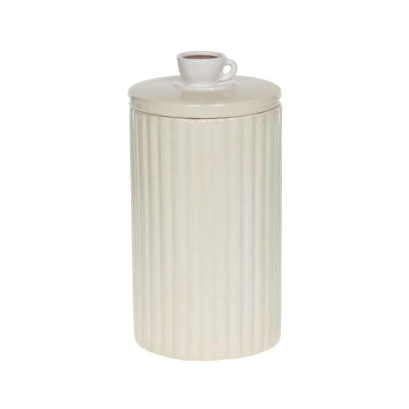 Apportez une touche d’élégance et de douceur à votre cuisine avec cette boîte petit déjeuner en céramique au design raffiné. Sa finition cannelée, à la fois moderne et intemporelle, sublime sa silhouette épurée tandis que son couvercle, délicatement surmonté d’un bouton en forme de tasse, ajoute une note chaleureuse et originale. Pensée pour allier esthétique et praticité, elle permet de conserver vos aliments à l’abri de l’humidité tout en apportant du charme à votre plan de travail. Son format généreux est idéal pour accueillir café, sucre, céréales ou biscuits, et s’intègre parfaitement dans tous les styles de cuisine, du plus contemporain au plus authentique. Un indispensable du quotidien qui allie fonctionnalité et élégance avec subtilité.