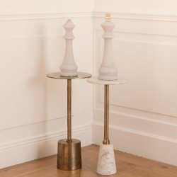 Optez pour l’élégance intemporelle avec le bout de canapé Clyde, une pièce raffinée mêlant la pureté du marbre blanc et la chaleur de l’aluminium doré. Son design élancé et minimaliste en fait un véritable objet décoratif, idéal pour sublimer un salon, une chambre ou un espace détente. Son plateau rond en marbre blanc offre une surface chic et lumineuse, parfaite pour accueillir une lampe, un vase ou vos objets du quotidien. Le pied fin en aluminium doré apporte une touche précieuse et contemporaine, tandis que sa base en marbre massif assure une excellente stabilité. Avec ses dimensions 25 × 25 × 60 cm, ce guéridon compact s’intègre facilement dans tous les intérieurs, tout en apportant un charme sophistiqué. Existe en différents modèles.