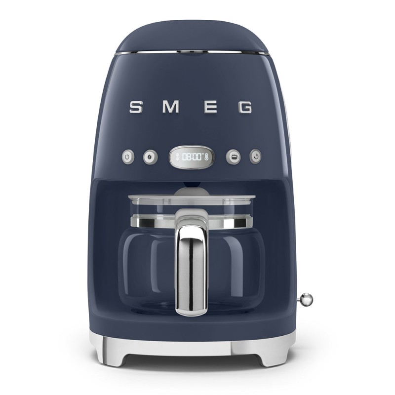 Apportez une touche d’élégance rétro à votre cuisine avec la cafetière filtre SMEG bleu marine, un parfait équilibre entre design iconique et performance moderne. Avec sa capacité généreuse allant jusqu’à 10 à 12 tasses et sa carafe en verre, elle vous permet de préparer un café convivial pour toute la journée ou pour recevoir vos invités en toute simplicité. Grâce à sa fonction Arôme, ajustez l’intensité de votre café selon vos envies : doux et léger ou plus corsé, pour une dégustation parfaitement personnalisée. Son interface intuitive avec écran digital vous permet également de programmer le démarrage automatique, afin de profiter d’un café fraîchement préparé dès votre réveil. Pratique au quotidien, elle maintient votre café au chaud jusqu’à 40 minutes après l’infusion et vous alerte lorsqu’un détartrage est nécessaire, garantissant ainsi une utilisation optimale dans le temps. Avec son design rétro emblématique, ses finitions chromées et son coloris navy élégant, cette cafetière SMEG s’impose comme un véritable objet déco autant qu’un appareil performant, idéal pour sublimer une gamme d’électroménager premium.