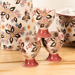 Découvrez le coffret de 4 coquetiers Siena, un incontournable de la gamme Siena signée Table Passion. Élégamment fabriqués en grès de haute qualité, ces coquetiers allient robustesse et esthétique raffinée. Chaque pièce présente un design artisanal unique, sublimé par un décor floral coloré aux teintes chaleureuses de rouge, jaune et bleu, rehaussé par une base rouge profonde qui apporte une touche de charme rustique et convivial à votre table. Parfaitement dimensionnés pour accueillir vos œufs à la coque, ces coquetiers conjuguent praticité et élégance, apportant une note d’authenticité et de gaieté à vos petits-déjeuners ou brunchs en famille.