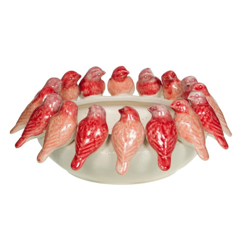 Apportez une touche poétique et chaleureuse à votre intérieur avec cette élégante coupe décorative ornée de délicats oiseaux en céramique émaillée. Ses nuances de rouges et de rosés, sublimées par un émail brillant, captent la lumière et apportent instantanément du caractère à votre décoration. Chaque oiseau, finement sculpté, crée un effet visuel plein de douceur et de mouvement, pour une pièce à la fois originale et raffinée. Idéale en centre de table, sur un buffet ou une étagère, cette coupe se prête aussi bien à la présentation de fruits, de pot-pourris ou de petits objets, qu’à une utilisation purement décorative. Une création pleine de charme qui invite à la contemplation et insuffle une atmosphère douce et vivante à votre intérieur.