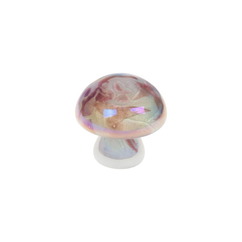Apportez une touche poétique et colorée à votre intérieur avec ce champignon décoratif en verre aux reflets blancs et prune. Son effet sulfure irisé capte la lumière pour sublimer vos espaces, que ce soit sur une étagère, une table ou un bureau. Un petit objet d'art qui invite à la douceur et à la nature, parfait pour personnaliser votre décoration.