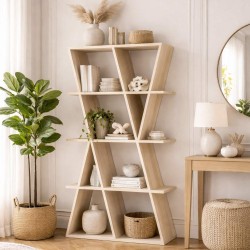 Apportez une touche de caractère et d’élégance à votre intérieur avec l’étagère Popa en bois de manguier massif naturel. Son design original et géométrique met en valeur vos objets décoratifs, livres ou plantes tout en apportant une note chaleureuse à votre décoration. Dotée de 6 niches de rangement, cette étagère offre un espace de rangement pratique tout en conservant une esthétique moderne et aérienne. Avec ses dimensions 80 x 35 x 160 cm, l’étagère Popa s’intègre facilement dans un salon, un bureau ou une chambre pour organiser votre espace avec style.