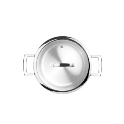 Dotée d'un couvercle et de poignées également en acier inoxydable, elle offre une polyvalence sans pareille, pouvant être utilisée avec n'importe quel type de four. Son fond thermo-diffuseur sandwich en inox-aluminium-inox assure une répartition uniforme de la chaleur, permettant une cuisson précise et maîtrisée à chaque utilisation.