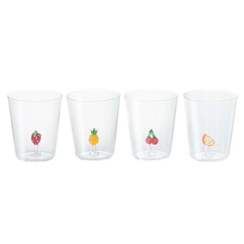 Apportez une touche fraîche et gourmande à votre table avec ces verres à eau décoratifs aux motifs de fruits. À la fois ludiques et élégants, ils égayent instantanément vos repas et séduisent par leur originalité. Chaque verre est orné d’un petit fruit en relief au fond : fraise, ananas, cerise ou orange. Parfaits pour un usage quotidien comme pour des occasions conviviales, ils apportent une note estivale et tendance à votre vaisselle. Compacts et légers, ces verres s’intègrent facilement à toutes les tables et rendent chaque boisson encore plus agréable. (lot de 4)