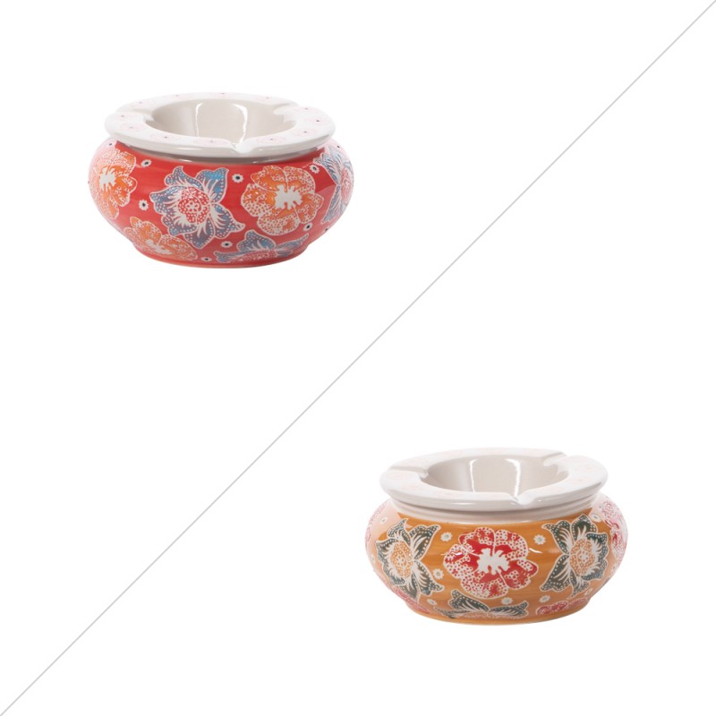 Apportez une touche artistique à vos espaces de détente avec le cendrier Zéphyr. Conçu en grès, il reprend les motifs floraux emblématiques de la collection, mettant en valeur des accents de rouge profond et de moutarde dorée.