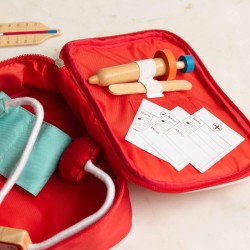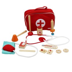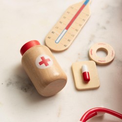 Offrez aux enfants une aventure médicale ludique avec ce set docteur en bois complet et éducatif ! Compact et facile à ranger (L16xP6xH21 cm), il contient tous les accessoires essentiels pour s’inventer médecin : stéthoscope, seringue, thermomètre, pansements et autres instruments miniatures. Conçu principalement en bois peint et textile (sac de transport inclus), ce set stimule le jeu symbolique, encourage l’imagination et favorise le développement moteur des plus petits. Idéal pour des heures de jeux créatifs et d’apprentissage en toute sécurité.