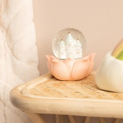 Apportez une touche féerique et délicate à votre intérieur avec cette boule à neige décorative. Niché dans un élégant socle en forme de fleur aux teintes douces, son globe en verre renferme un charmant château qui s’anime sous une pluie de paillettes scintillantes. À chaque mouvement, les reflets lumineux créent une ambiance apaisante et pleine de magie, idéale pour une chambre d’enfant ou un coin cosy. Son design poétique et ses couleurs tendres en font un objet décoratif aussi charmant qu’intemporel. Compacte et facile à placer (format idéal pour étagère ou table de chevet), cette boule à neige est parfaite pour apporter une note douce, rêveuse et lumineuse à votre décoration.