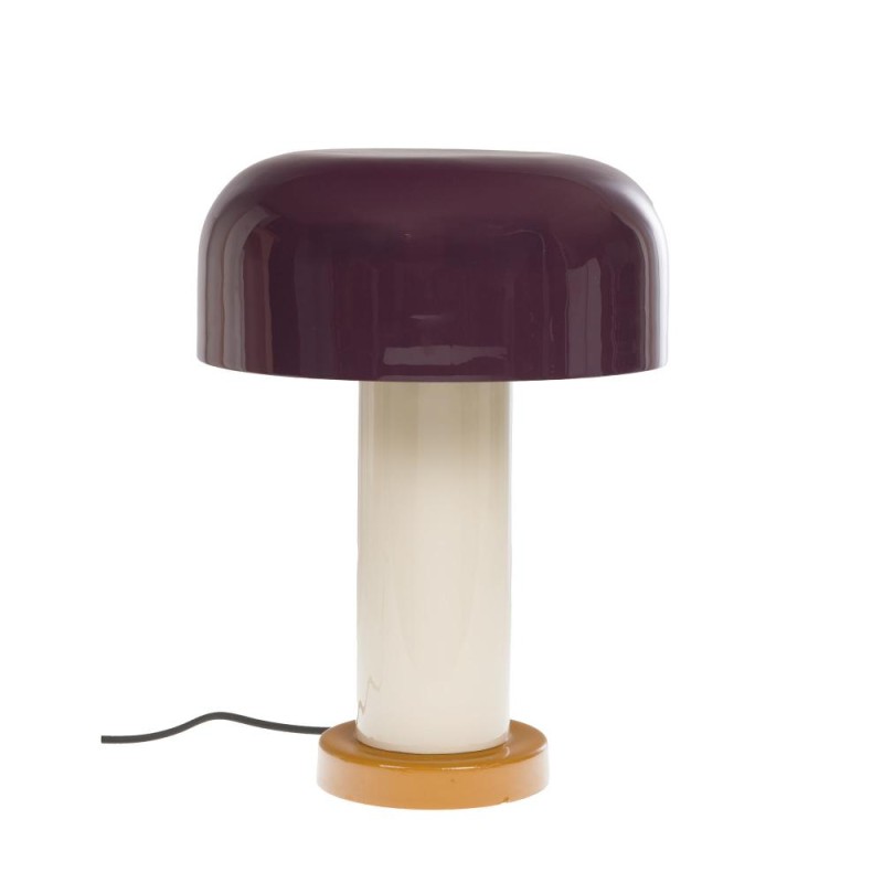 Avec son design audacieux et ses lignes arrondies, la lampe Janice incarne parfaitement l’esprit rétro-chic. Sa finition violette brillante apporte une touche de fraîcheur et d’originalité à votre décoration, tandis que sa structure en fer lui confère une allure moderne et robuste. Élégante aussi bien éteinte qu’allumée, elle diffuse une lumière douce et chaleureuse, idéale pour créer une atmosphère conviviale dans un salon ou une chambre. Ampoule E27_15W non fournie. Existe également en vert.