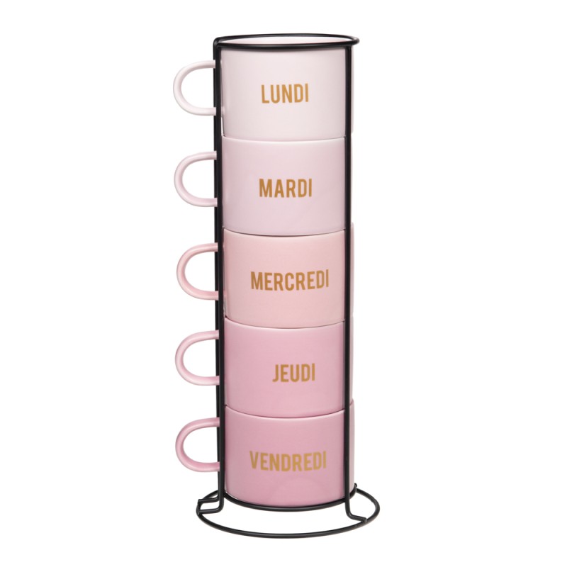 La collection Week de Table Passion met de la bonne humeur dans chaque journée. Déclinée en tasses et mugs en porcelaine, elle associe dégradés de roses élégants et messages positifs pour accompagner vos pauses café du lundi au dimanche. À la fois ludique et pratique, elle transforme vos instants gourmands en véritables petits rituels quotidiens. Une collection pleine de style et d’énergie, idéale pour démarrer la semaine du bon pied comme pour savourer les moments de détente.