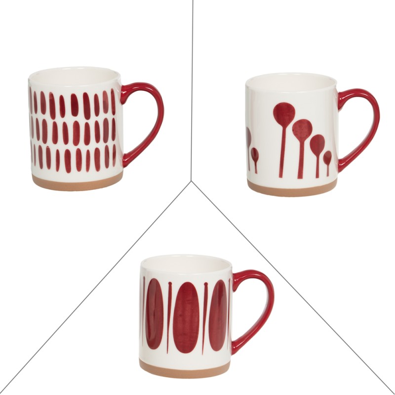 Savourez vos boissons chaudes avec style grâce à ce mug Mikonos en porcelaine fine. Son design élégant et moderne apporte une touche graphique unique à chaque pause café ou thé. Chaque mug est décoré de motifs rouges contemporains sur fond blanc, offrant un contraste vif et sophistiqué qui illumine votre table ou bureau. Sa contenance généreuse de 35 cl en fait le compagnon idéal pour vos cafés, chocolats chauds ou infusions. (lot de 3)