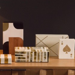 Apportez une touche d'élégance discrète à votre intérieur avec cette boîte décorative blanche aux lignes géométriques dorées. Parfaite pour ranger vos petits objets avec style, elle s'intègre harmonieusement dans un décor moderne et épuré, alliant praticité et raffinement.