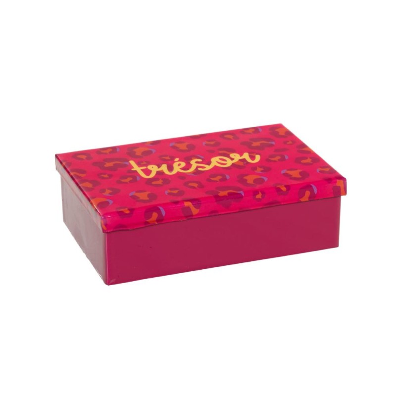 Apportez une touche audacieuse et tendance à votre décoration avec cette boîte décorative compacte en métal (21 x 14 x 6 cm). Son motif léopard revisité dans des teintes vibrantes et son inscription stylisée apportent du caractère et une note moderne à votre intérieur. À la fois pratique et esthétique, elle est idéale pour ranger vos petits objets du quotidien : bijoux, accessoires ou souvenirs. Son format compact permet de la placer facilement sur une étagère, une table de chevet ou un bureau, tout en ajoutant une touche déco originale. Robuste et légère, cette boîte allie fonctionnalité et style pour dynamiser votre espace avec une pointe de fantaisie.