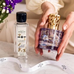 Laissez-vous séduire par le Coffret Lampe Berger Pure Lolita Lempicka Parme, une création à la fois féérique, élégante et sensuelle. Son parfum, inspiré du mythique Mon Premier Parfum, dévoile en tête la fraîcheur de l’anis étoilé et des feuilles de lierre, avant de s’épanouir sur un cœur floral et gourmand de réglisse, violette et iris. En fond, la fève tonka, le caramel et les bois crémeux apportent chaleur et volupté à cette fragrance envoûtante. Son flacon en verre parme délicatement enlacé de feuilles dorées incarne la grâce et la féminité, tandis que sa monture or satiné souligne la pureté de ses lignes. Un véritable bijou d’intérieur qui parfume votre maison d’un sillage sucré et poudré, empreint de douceur et de romantisme.