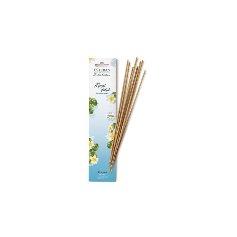 Offrez à votre intérieur une parenthèse d’évasion avec les encens indiens Monoï Soleil d’Esteban. Inspiré des îles paradisiaques, ce parfum solaire et floral diffuse une atmosphère chaleureuse et lumineuse, idéale pour transformer chaque instant en voyage sensoriel. Fabriqués selon un savoir-faire traditionnel, ces bâtonnets d’encens sont conçus à partir de composants naturels, sans colle ni colorant, pour une expérience authentique et respectueuse. Leur tige en bambou garantit une combustion harmonieuse, tandis que leur étui entièrement recyclable s’inscrit dans une démarche plus responsable. À l’allumage, Monoï Soleil dévoile des notes fraîches et légèrement acidulées, rapidement enveloppées par la douceur envoûtante de la fleur de tiaré. Le parfum évolue ensuite vers un cœur floral de frangipanier, sublimé par des accords chauds et ensoleillés qui évoquent la caresse du soleil sur la peau.