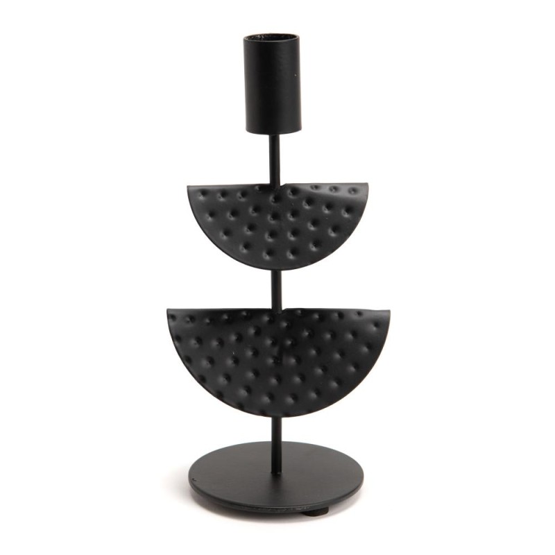 Le bougeoir Eli grand modèle est une pièce design qui allie modernité et élégance. Entièrement conçu en métal noir, il se distingue par ses formes géométriques originales et ses détails texturés qui apportent du caractère à votre décoration. Avec sa hauteur de 28,5 cm et sa largeur de 9 cm, il offre une présence raffinée sur une table, un buffet ou une console. Idéal pour accueillir une bougie longue, il crée une ambiance chaleureuse et sophistiquée, parfaite pour vos soirées ou vos repas.