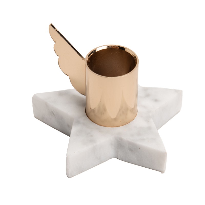 Apportez une touche d'élégance lumineuse avec ce bougeoir étoile en marbre blanc et métal doré. Compact et raffiné, il sublime vos bougies tout en décorant avec délicatesse vos espaces. Idéal pour créer une ambiance chaleureuse et stylée, il s'intègre parfaitement à toutes les décorations modernes et festives.