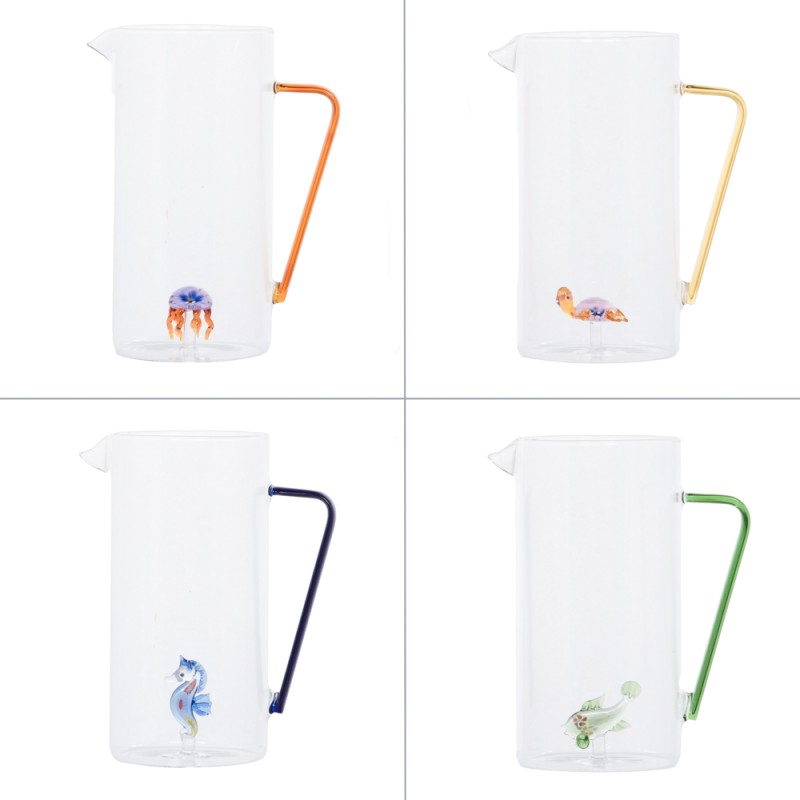 Apportez fraîcheur et originalité à vos repas avec le pichet Océan 1,3 L de la gamme Océan. Fabriqué en verre de qualité, il combine robustesse et transparence élégante, tout en mettant en valeur de charmants animaux de la mer à sa base, pour une touche ludique et surprenante. Avec sa grande capacité, il est idéal pour servir jus, eaux aromatisées ou boissons fraîches lors de repas en famille ou entre amis. Un mélange parfait de design amusant et de praticité pour embellir vos moments de convivialité. (1 modèle aléatoire parmi les 4 décors assortis. Si vous avez une préférence pour un décor, veuillez nous envoyer un message après votre commande, nous ferons de notre mieux afin de vous satisfaire.