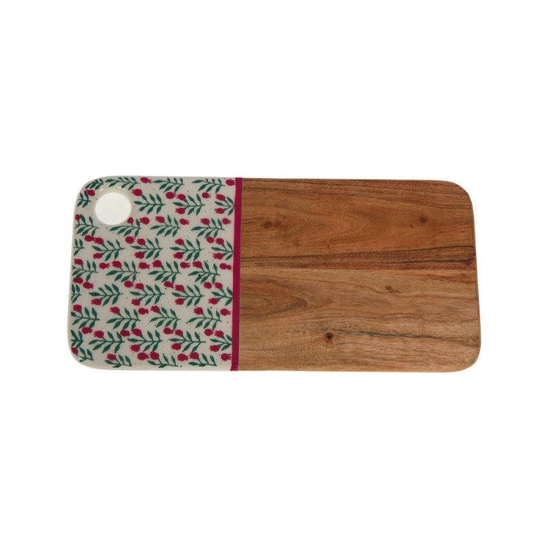 Apportez une touche d'élégance et de couleur à vos préparations avec cette planche en bois d'acacia décorée. Pratique et esthétique, elle sublime vos apéritifs et repas tout en étant facile à nettoyer. Son design unique et ses dimensions compactes en font un accessoire indispensable pour une cuisine conviviale et chaleureuse.