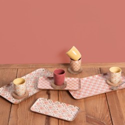 Ses tons chauds de rouge et rosé, délicatement nuancés, en font un véritable objet décoratif, idéal pour servir vos boissons, présenter des gourmandises ou simplement embellir une table ou un buffet. Coloré et raffiné, il s’intègre parfaitement dans une décoration moderne ou ethnique, apportant chaleur et style à votre espace.