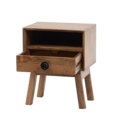 Apportez une touche de chaleur et d'authenticité à votre chambre avec la table de chevet GINO. Entièrement réalisée en bois de manguier massif elle séduit par son design épuré et ses lignes modernes qui s'intègrent facilement dans tous les styles de décoration. Pratique et fonctionnelle elle dispose d'un tiroir spacieux pour ranger vos effets personnels ainsi qu'une niche ouverte idéale pour vos livres lunettes ou accessoires du quotidien. Ses pieds fuselés lui confèrent une allure élégante et une parfaite stabilité. Compacte (30x40x50 cm) elle trouve aisément sa place de chaque côté du lit et peut également être utilisée comme petit meuble d'appoint dans d'autres pièces de la maison.