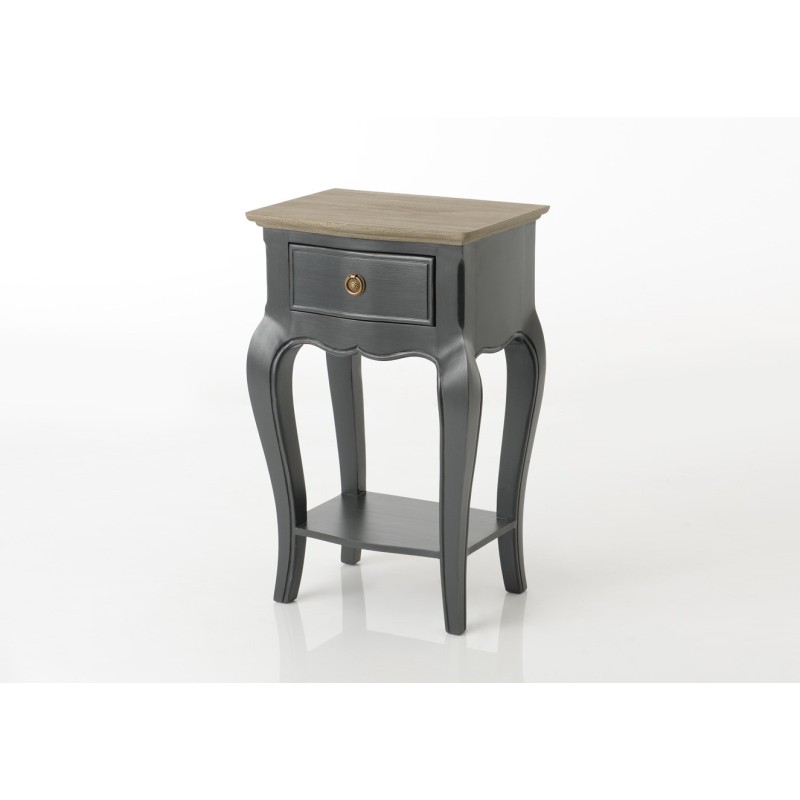 Apportez une touche de charme classique à votre chambre avec ce chevet gris Maddy. Son plateau en bois clair contraste avec la structure grise aux lignes courbes, créant une ambiance chaleureuse et élégante. Pratique, il dispose d'un tiroir et d'une étagère pour garder vos essentiels à portée de main.