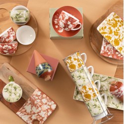 Savourez chaque moment café ou thé avec élégance grâce à ce coffret de 2 tasses en porcelaine fine New Bone China. Leur motif floral délicat sur fond terracotta apporte chaleur et raffinement à votre table, pour un quotidien élégant ou des instants conviviaux. Compactes et légères, ces tasses sont idéales pour un usage quotidien ou comme cadeau chic et raffiné pour vos proches.