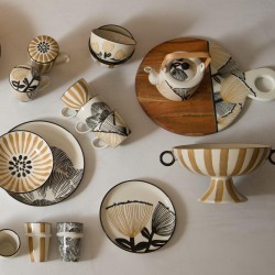 Savourez vos instants thé avec cette élégante théière infuseur en grès, dotée d'une anse en bois naturelle. Son design graphique et ses teintes douces apportent une touche d'authenticité et de chaleur à votre pause détente. Pratique avec sa capacité de 750 ml, elle s'invite avec charme dans votre cuisine ou salon.