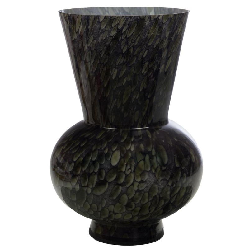Apportez une touche d'élégance et d'originalité à votre intérieur avec ce vase Verona en verre soufflé. Sa silhouette généreuse et son motif tacheté noir et vert foncé créent un effet visuel captivant, parfait pour sublimer vos fleurs ou décorer seul. Un objet déco raffiné qui habille votre espace avec style et caractère.