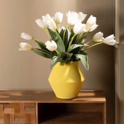 Apportez une touche lumineuse et contemporaine à votre intérieur avec le vase Avila jaune 29 cm. Avec son design facetté et sa silhouette généreuse, il attire naturellement le regard et devient une véritable pièce décorative. Sa finition mate dans un jaune citron éclatant illumine instantanément une pièce et apporte une note moderne et chaleureuse à votre décoration. Placé sur une console, une table basse ou une étagère, il structure l’espace tout en ajoutant du caractère. Polyvalent, le vase Avila peut accueillir fleurs séchées, branchages décoratifs ou compositions naturelles, mais peut également être utilisé seul comme objet décoratif pour sublimer votre intérieur. Avec ses dimensions Ø29 x H29 cm, ce vase volumineux s’impose avec élégance et s’intègre aussi bien dans un salon, une entrée ou une salle à manger, pour une décoration à la fois tendance et raffinée.