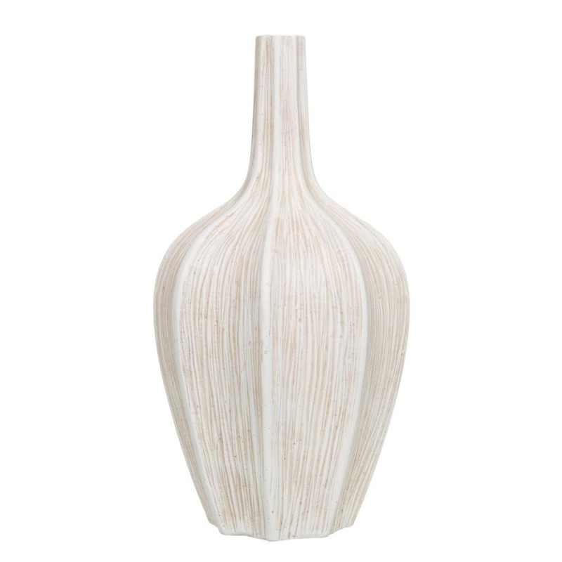 Apportez une élégance naturelle et apaisante à votre intérieur avec le vase Ressac. Haut et élancé (60 cm), il séduit par sa silhouette gracieuse et sa finition texturée effet bois blanchi, qui évoque un esprit artisanal et authentique. Idéal pour accueillir des branchages ou des fleurs séchées, il peut également être exposé seul comme véritable objet décoratif sur une console ou au sol. Léger et facile à déplacer, il s’intègre parfaitement dans une décoration contemporaine, bohème ou naturelle.